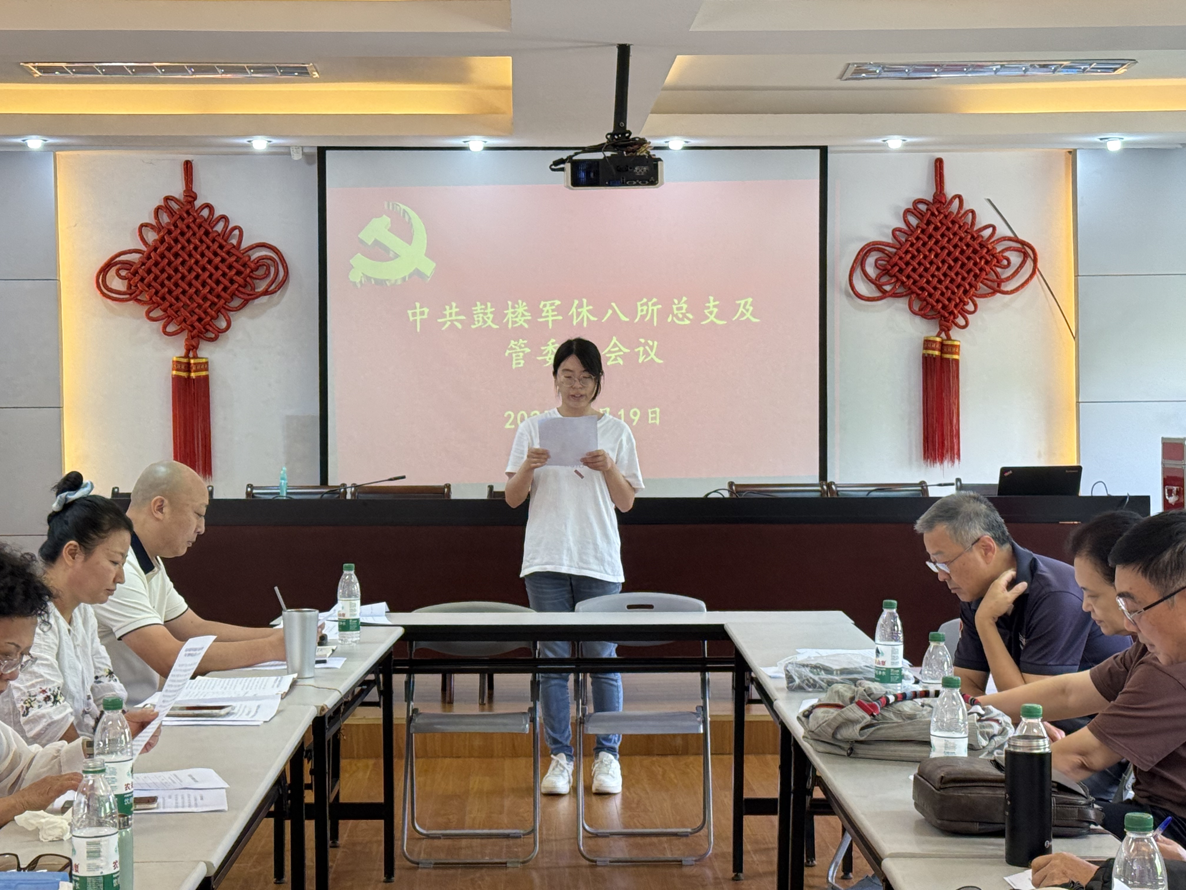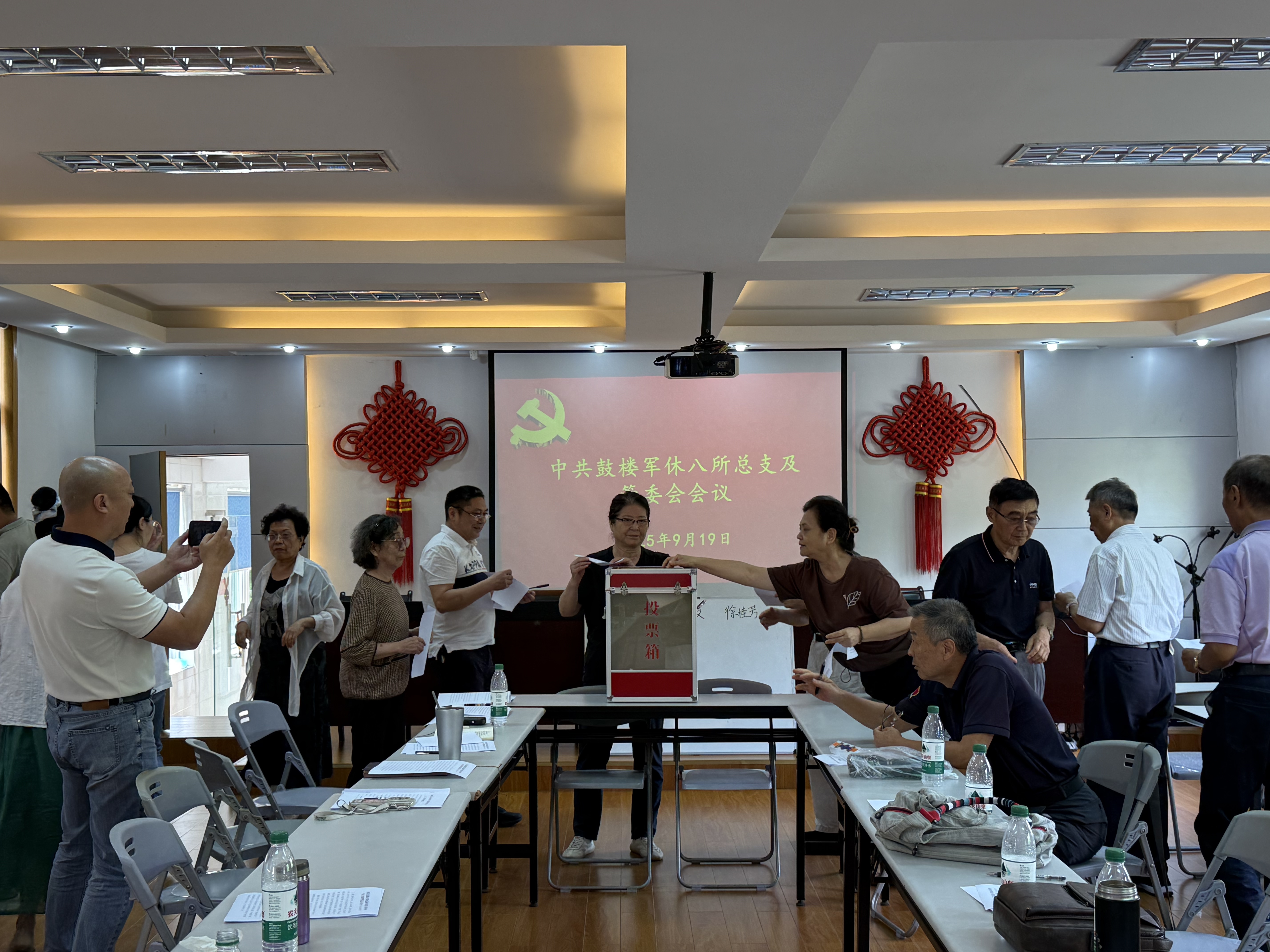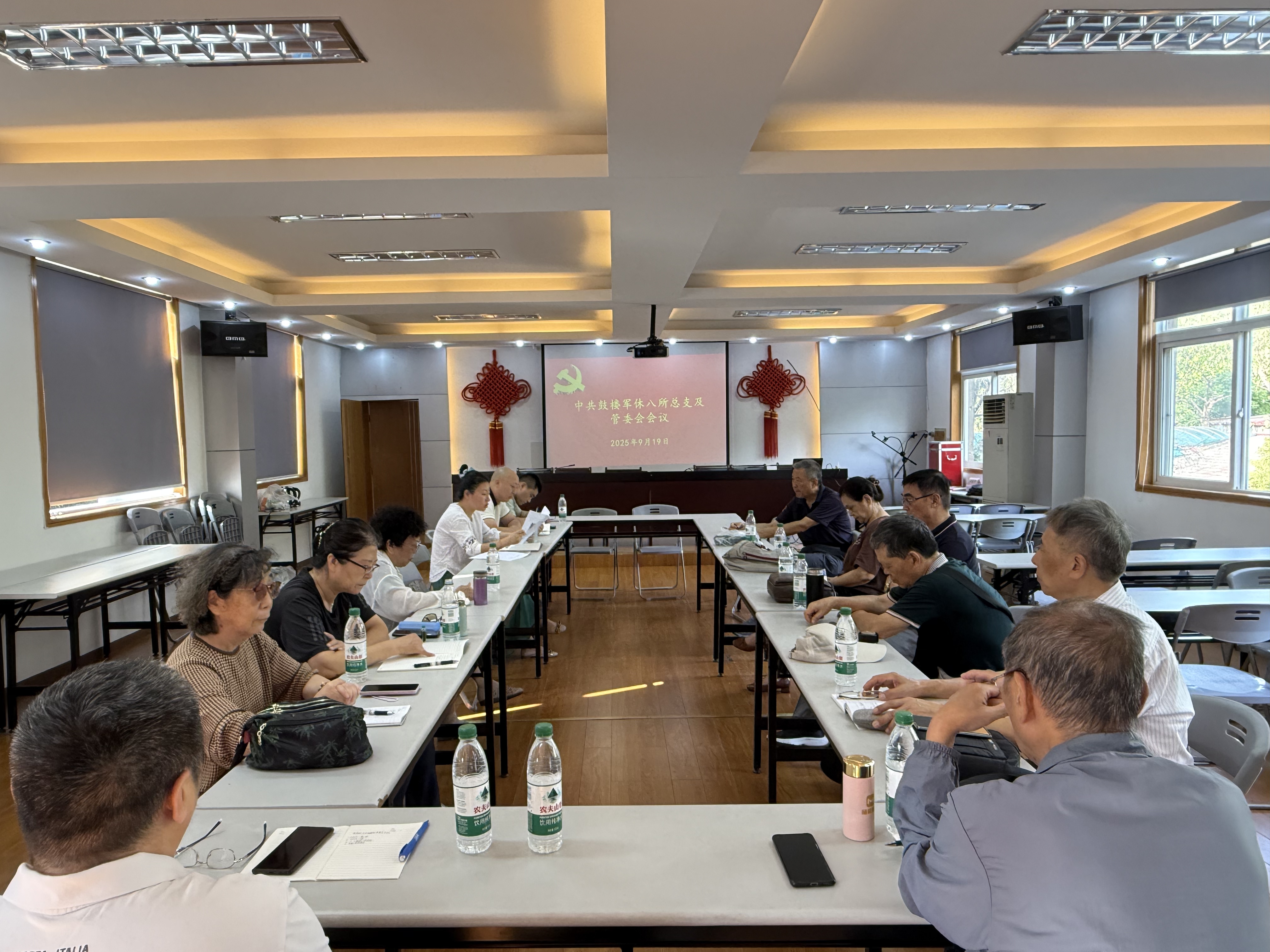 2025年9月19日上午,鼓楼军休八所召开党总支及管委会会议,会议由所党总支书记、所长仇欣婕主持。会议议程有六项,一是汇报近期完成的各项工作;二是重点部署“慈善一日捐”活动实施方案;三是汇报下月体检工作安排;四是汇报金陵新一村门面房失火情况及并研究后续处置措施;五是汇报建宁路200号服务站的修缮计划;六是投票选举工作人员专业技术十级聘任人员。