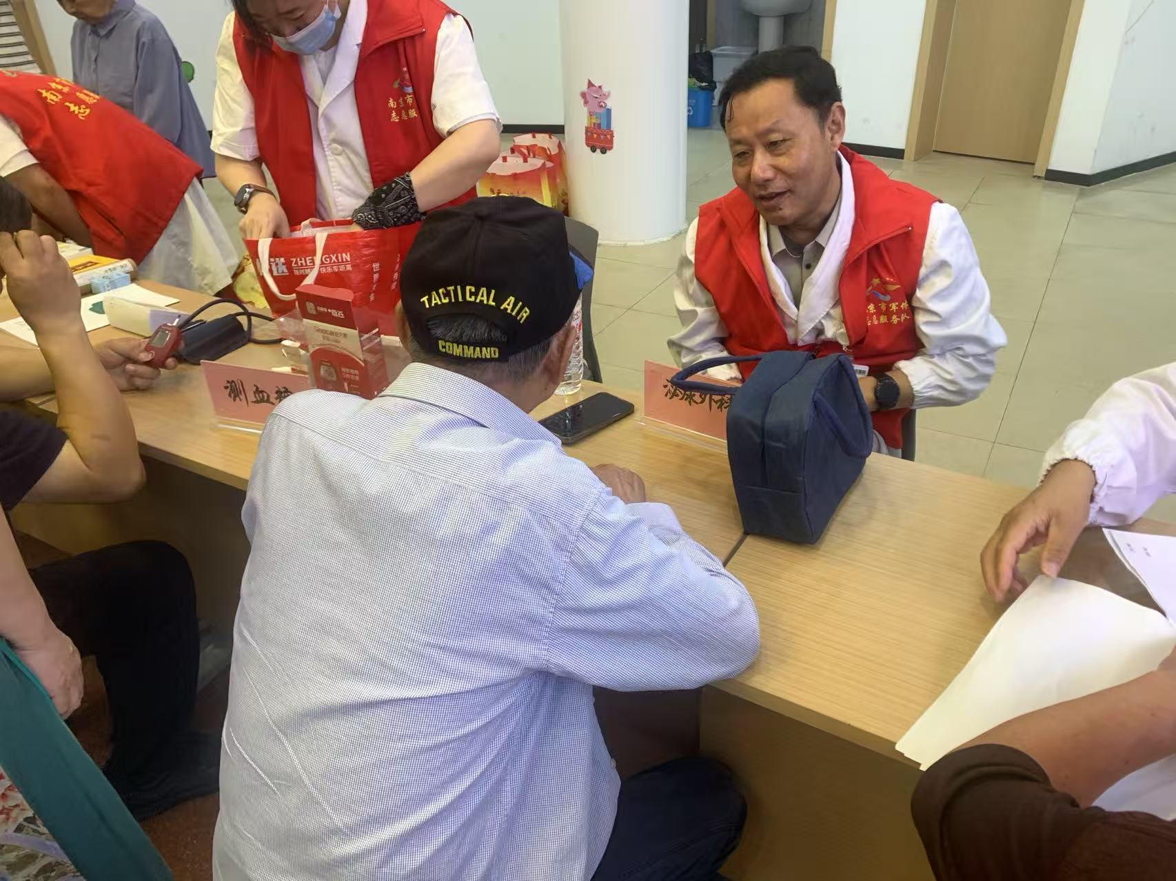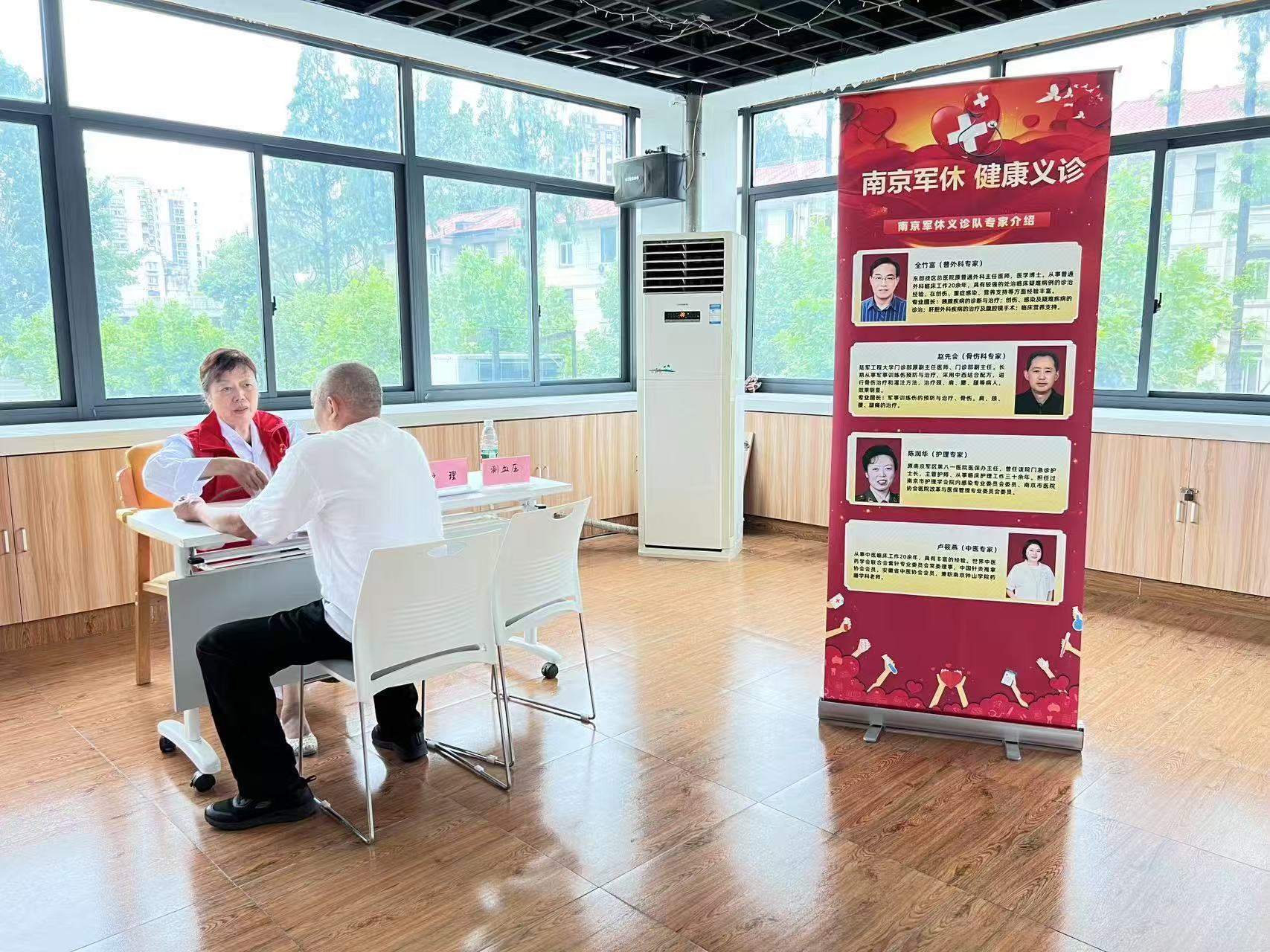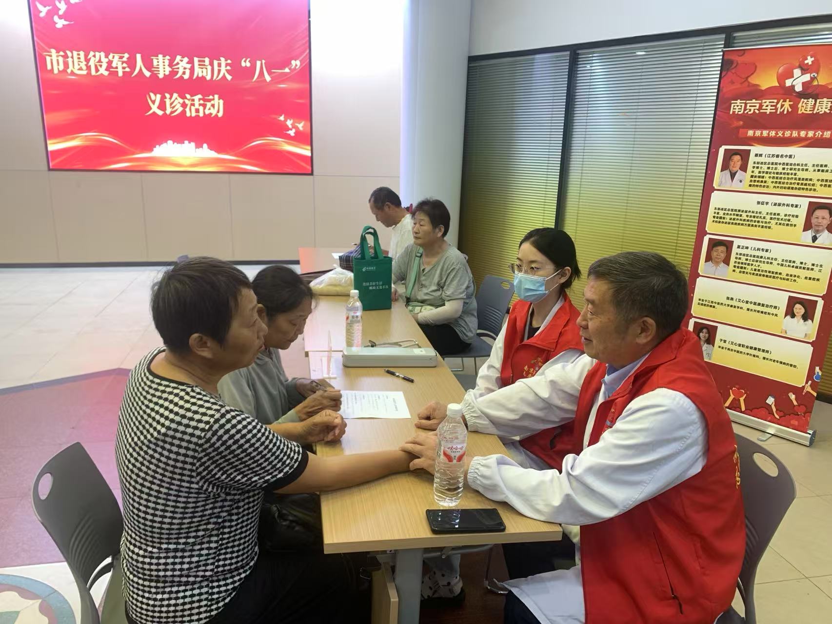 为庆祝中国人民解放军建军98周年,8月1日上午,秦淮军休八所“戎光”爱心医疗服务团的蔡辉、张征宇、陈润华三位专家受邀参加南京市退役军人事务局在雨花台梅山社区开展的“庆八一”义诊活动。