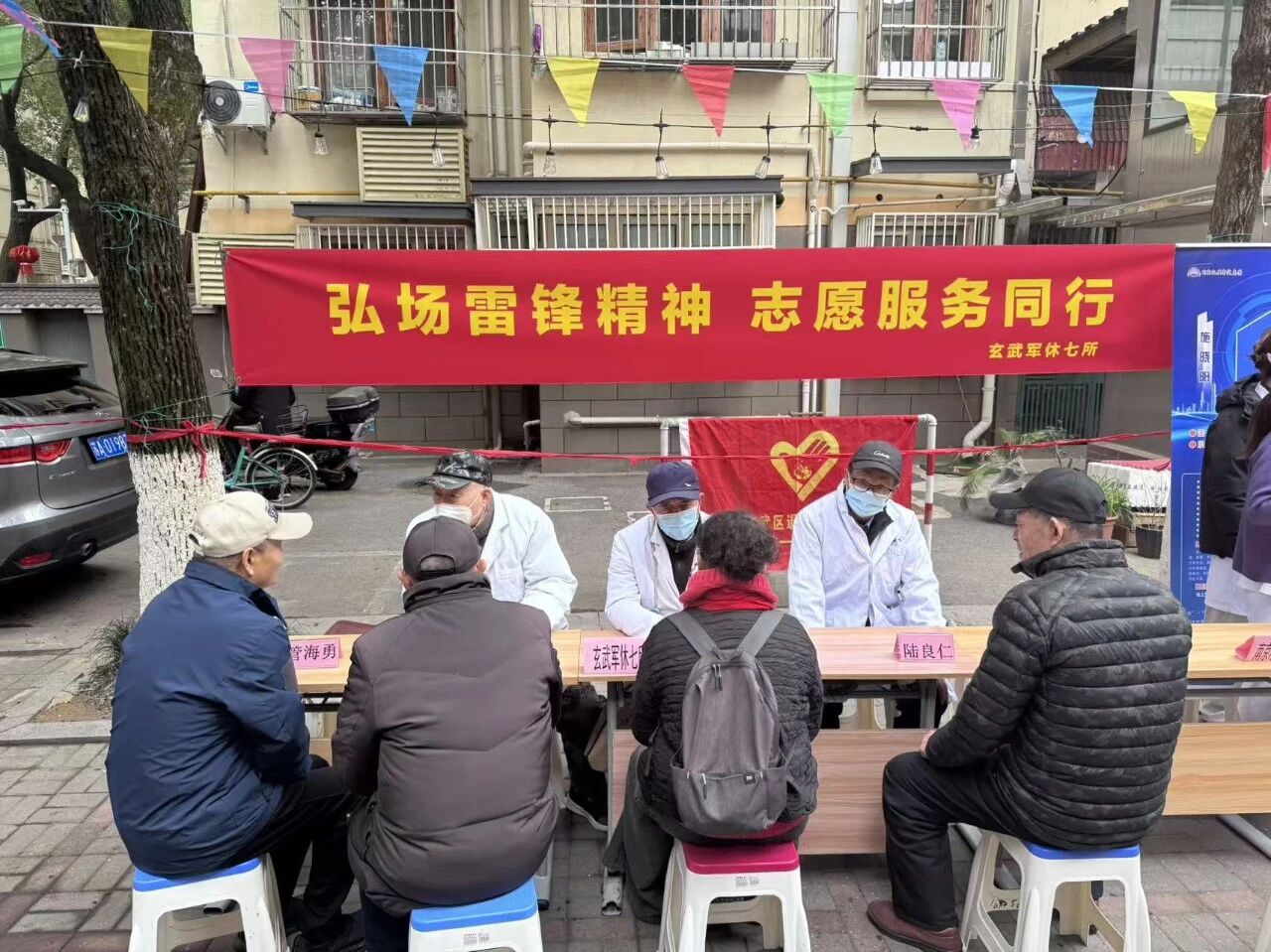 为深入学习贯彻习近平总书记关于弘扬雷锋精神的重要论述,扎实推进新时代文明实践活动,在3月5日“学雷锋 纪念日”当天,玄武军休七所开展“学雷锋·送健康”义诊活动。玄武军休七所北京东路活动站军休干部响应号召,为公教一村社区居民提供免费诊疗服务,以实际行动传承雷锋精神,践行"为人民服务"宗旨。